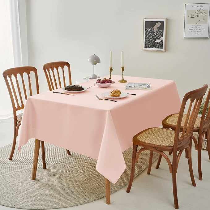 Classic Elegance Tablecloth: Crafted from 100% durable, reusable polyester. Features clean hemmed edges and timeless colors that complement exquisite tableware perfectly. Ideal for everyday use, events.