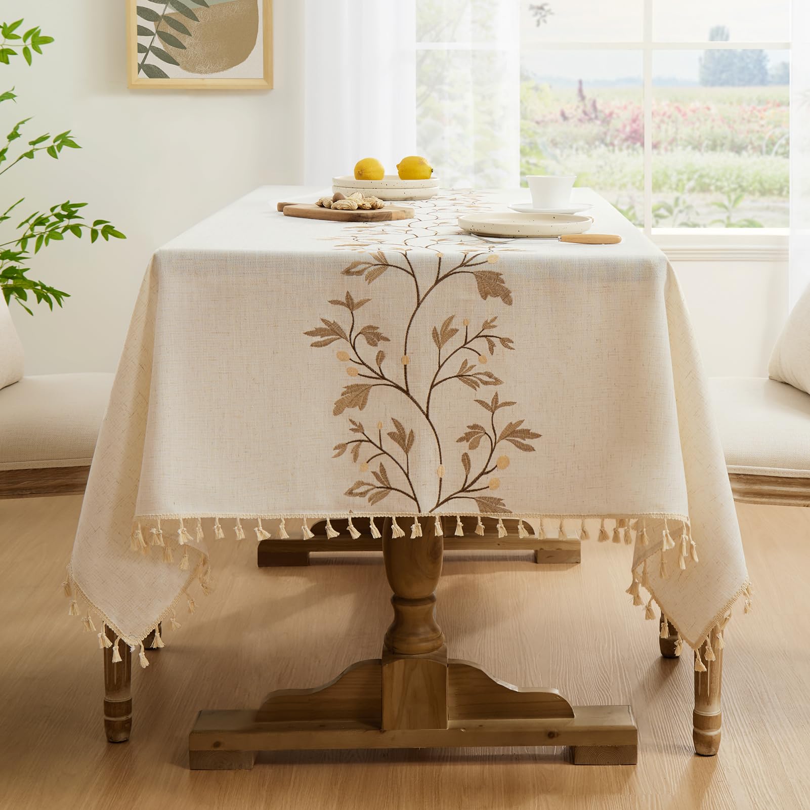 Polyester Branches Embroidery Tablecloth with Tassels in Gold