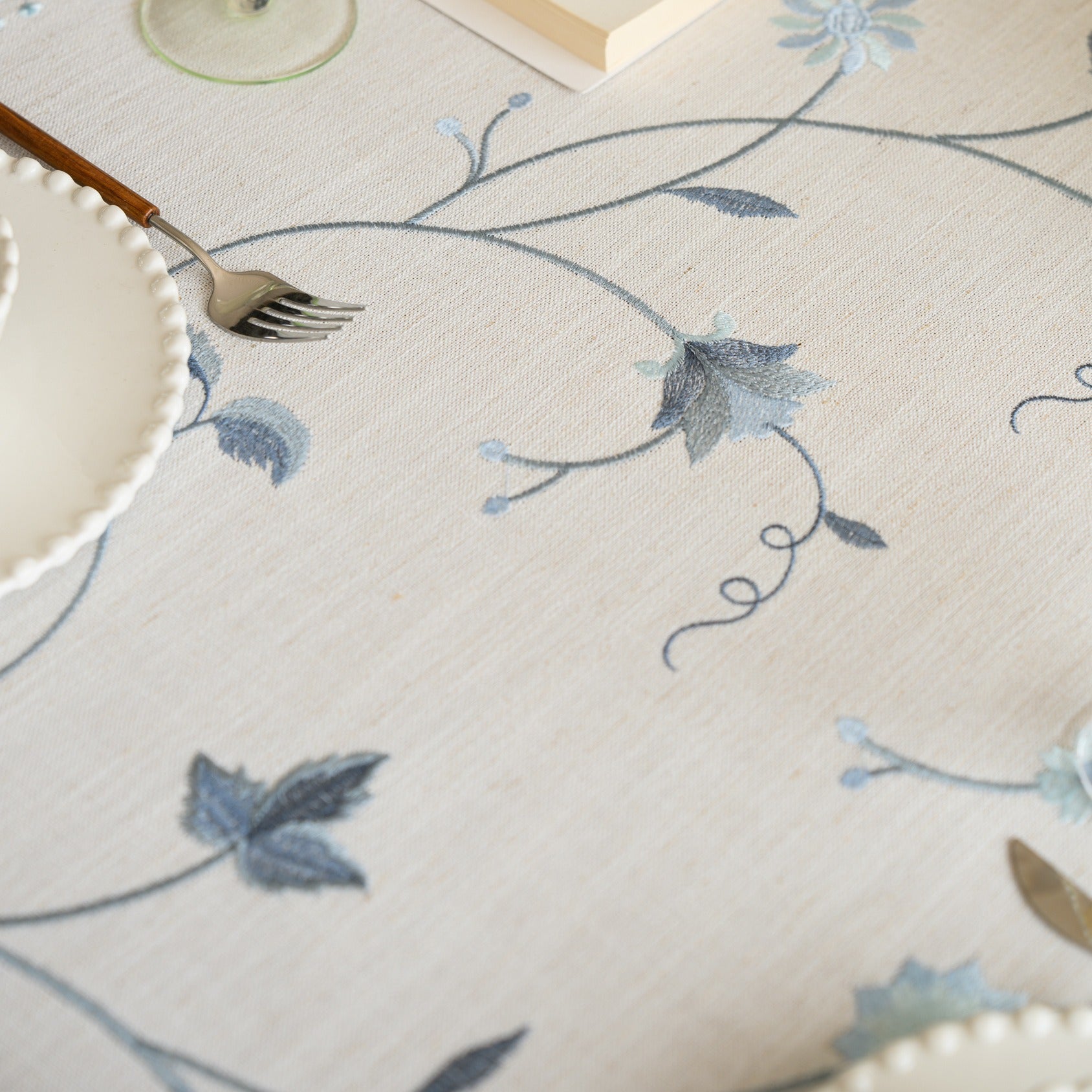 Polyester-Cotton Blend Embroidered Blue Branch Tablecloth