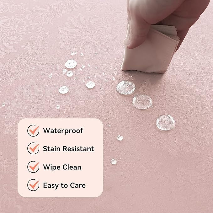 Polyester Jacquard Wellington Waterproof Damask Pattern Tablecloth in Light Pink