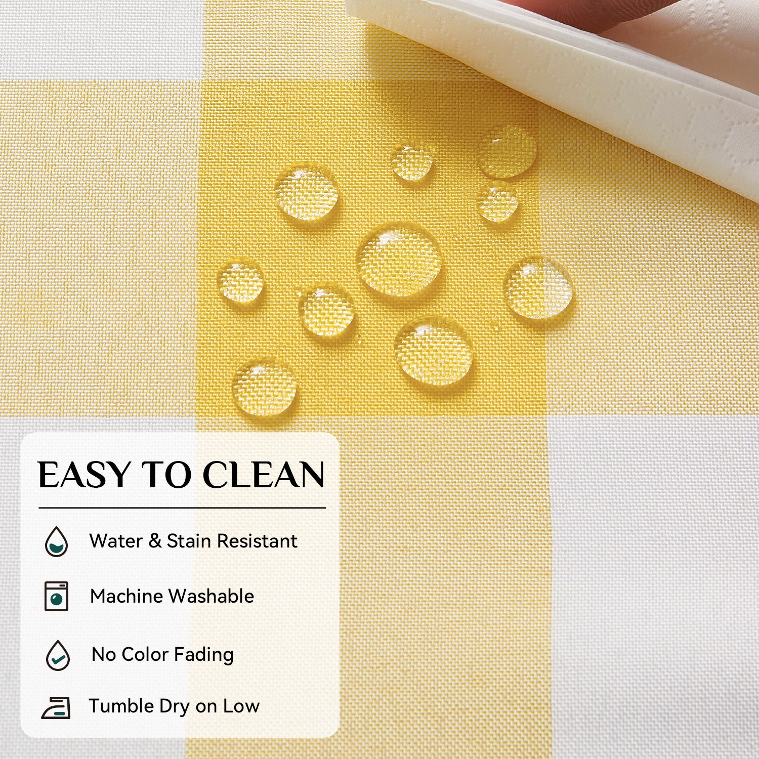 Polyester Waterproof And Stain Resistant Buffalo Check Tablecloth in Yellow and White