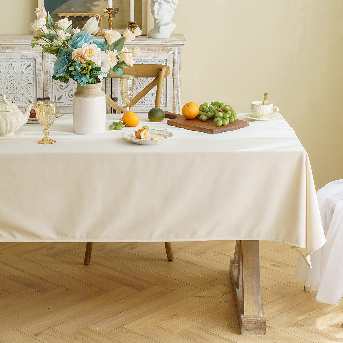 Polyester Waterproof Solid-Velvet Tablecloth in Beige