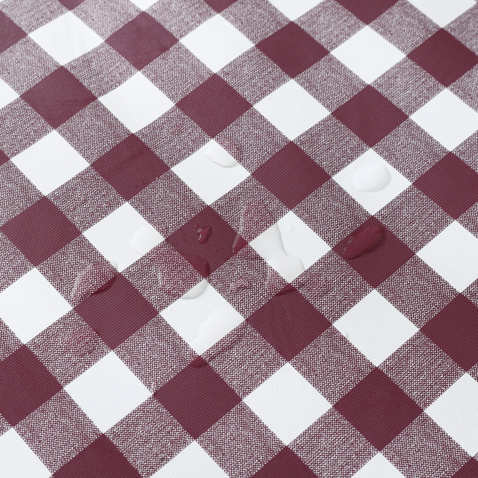 PVC Waterproof and Oil Resistant Plaid Tablecloth in Burgundy and White