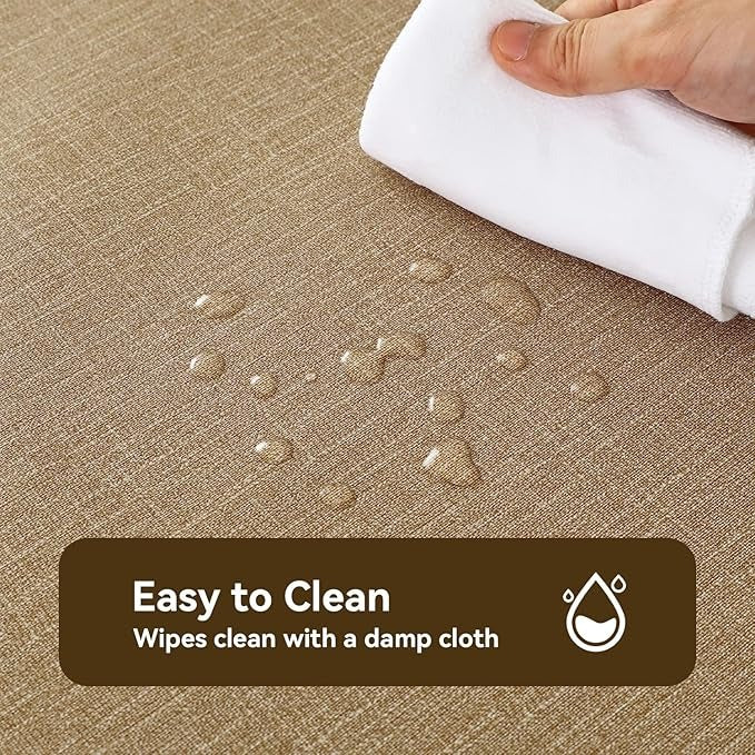 Rich Caramel Tablecloth: Crafted in premium faux linen-look vinyl. Its warm solid hue effortlessly complements any tableware. Ideal for daily dining, cafes, parties & picnics. Combines timeless elegance with durable, easy-care practicality for any event.
