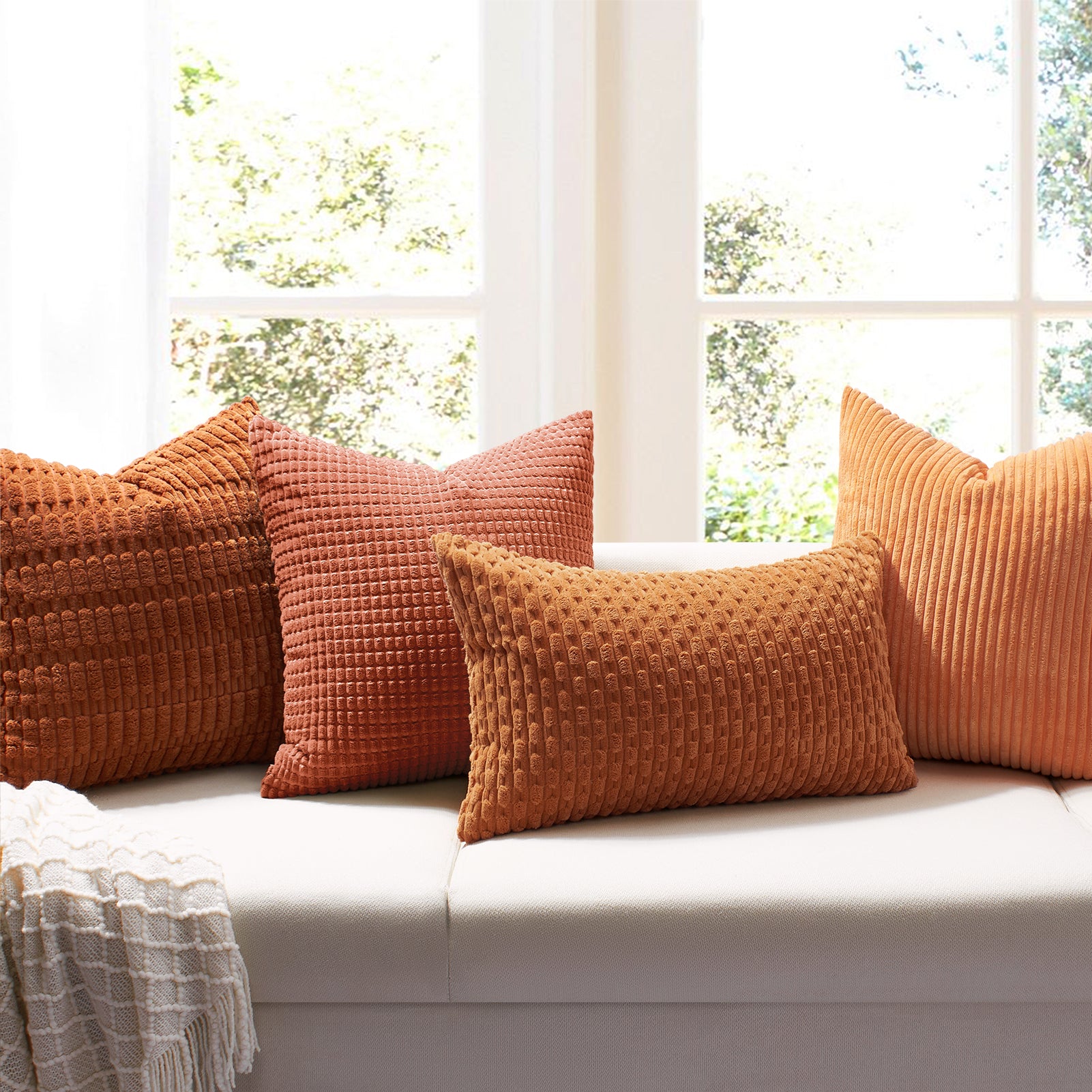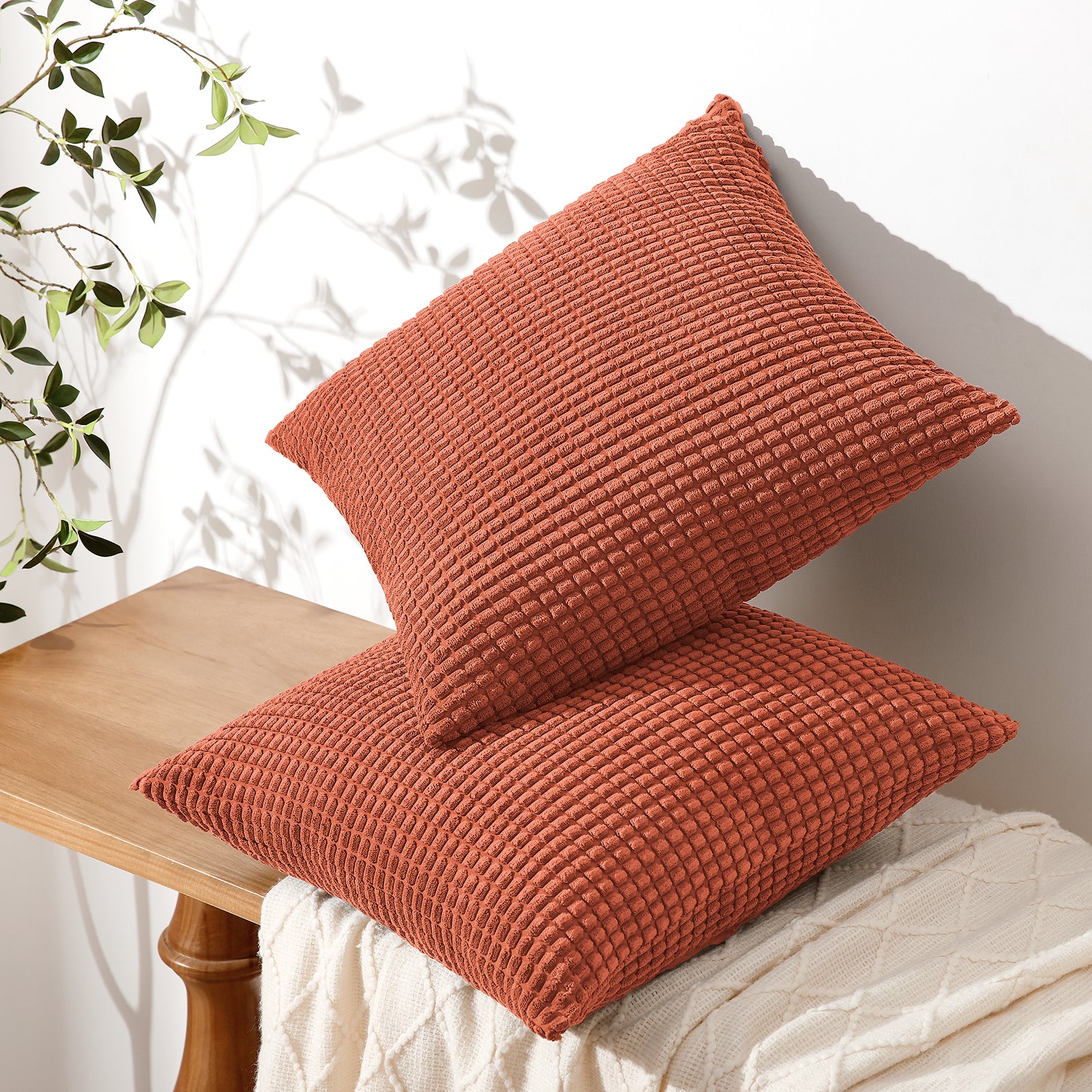 Soft Corduroy Corn-Kernel Pattern Pillowcases in Rust