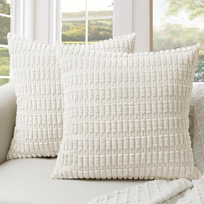 Soft Corduroy Puffy Stripe Pattern Pillowcases in Cream