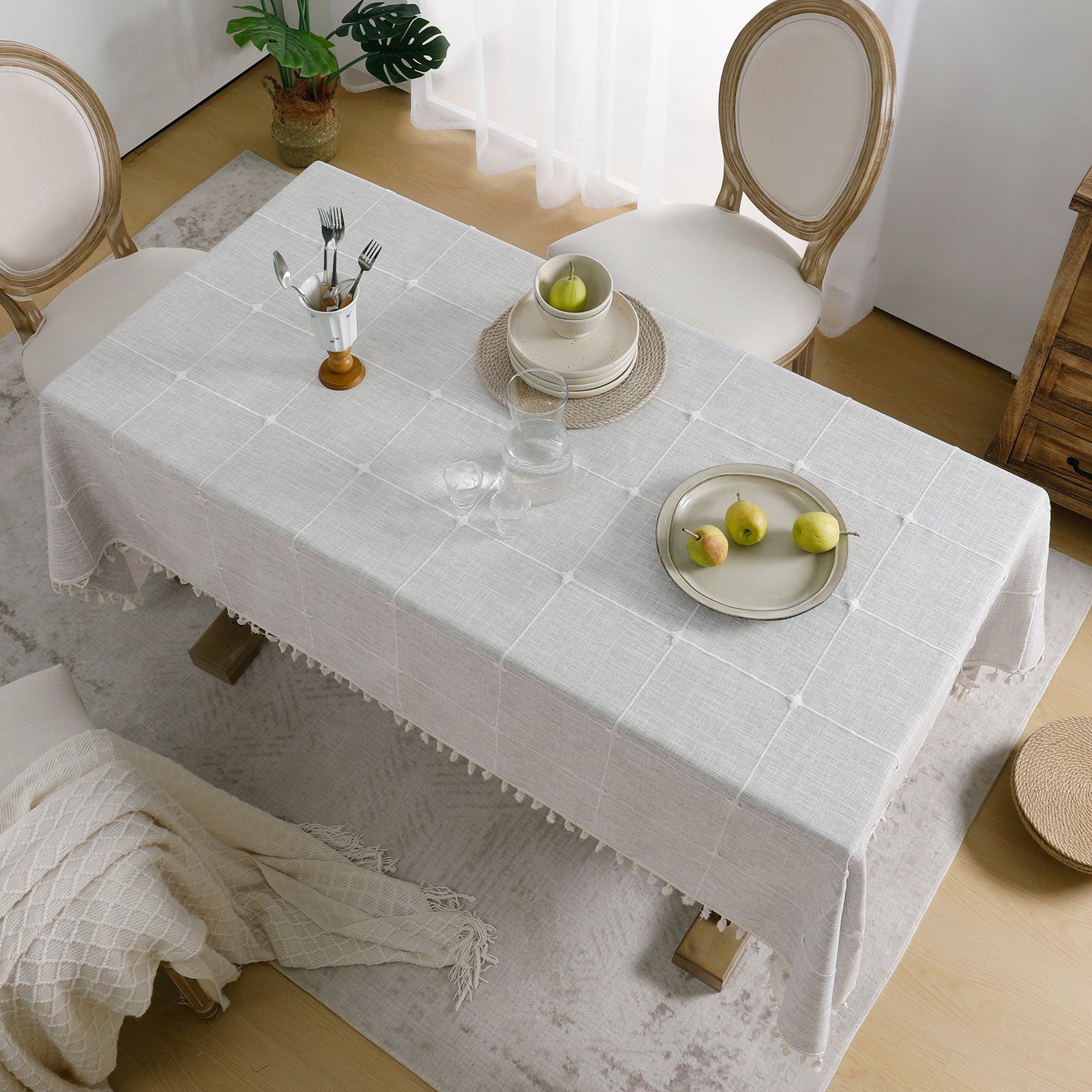 Waterproof And Wrinkle-Resistant Cotton Blend Classic Tassel Tablecloth in Grey Plaid