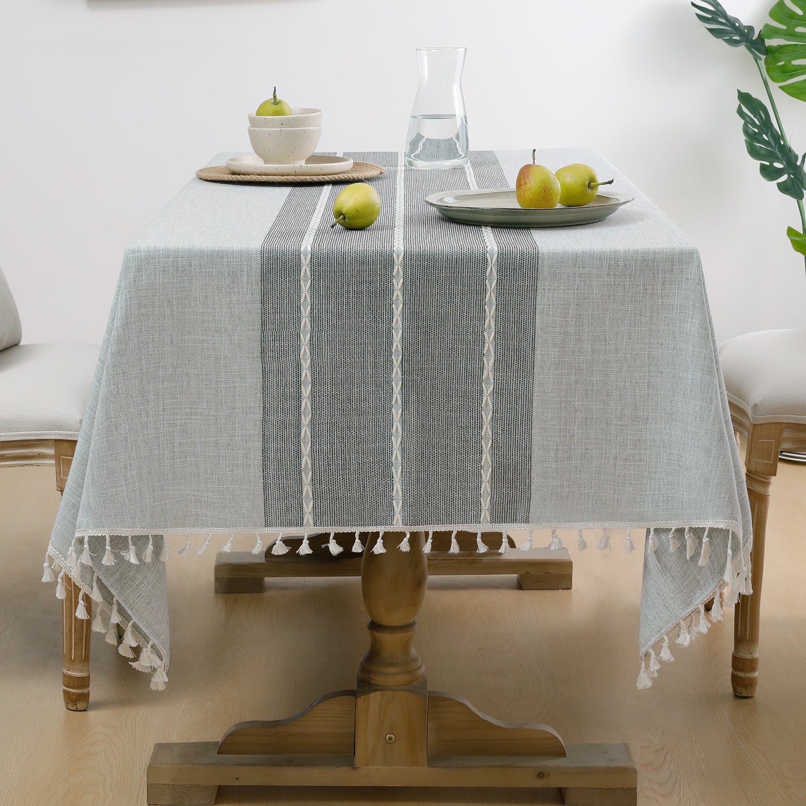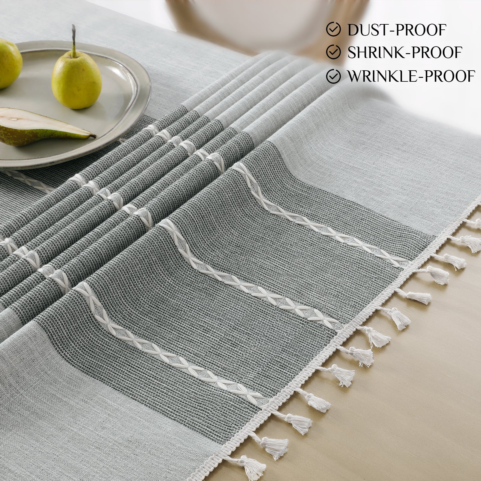 Wrinkle-Resistant and Waterproof Cotton Blend Tassel Tablecloth in Grey Lines
